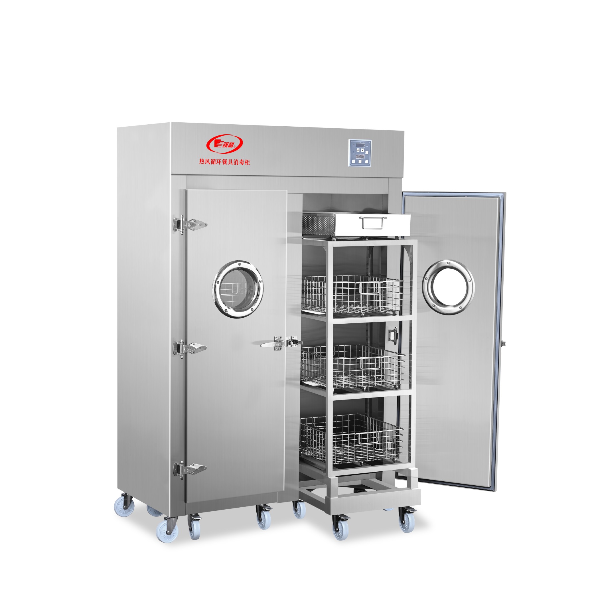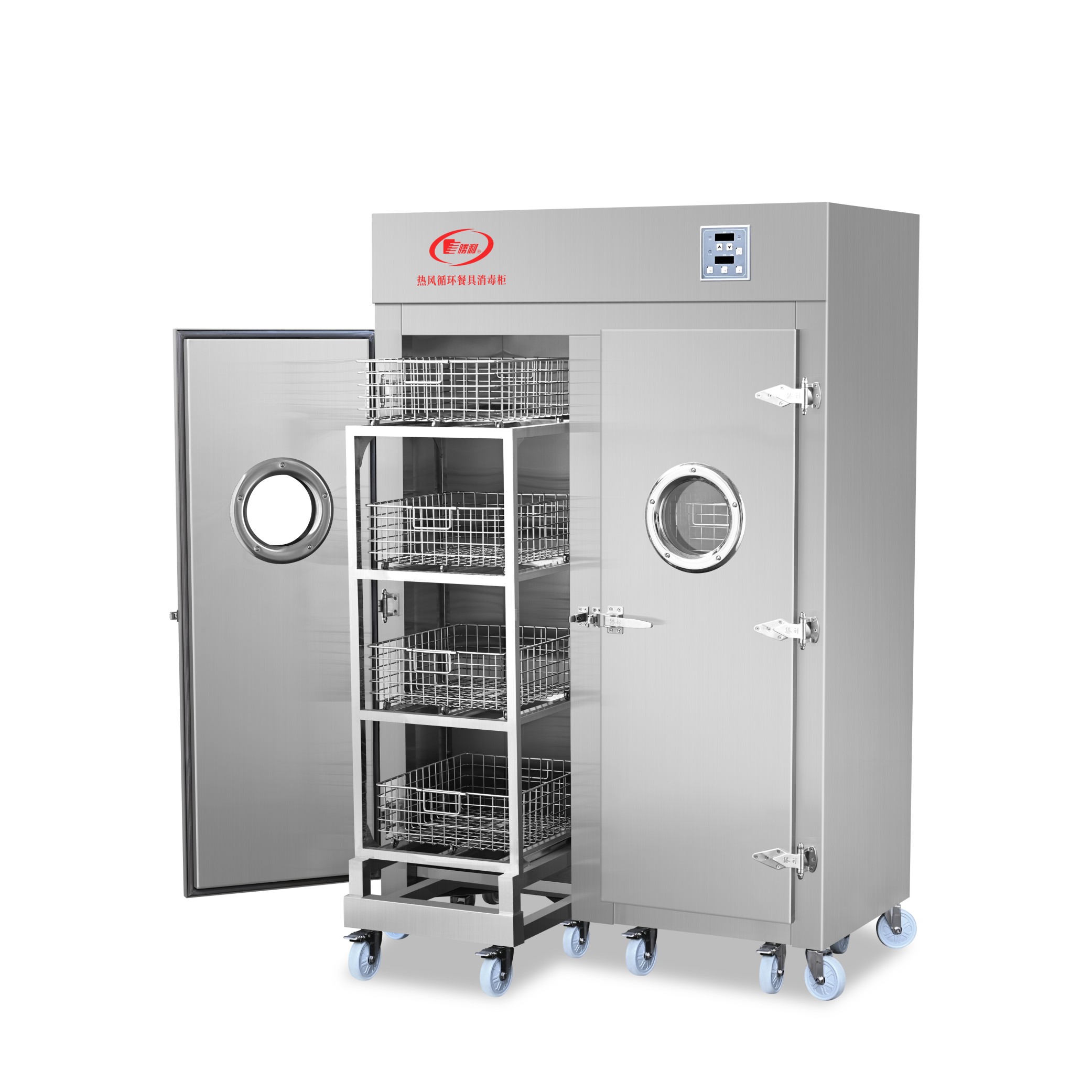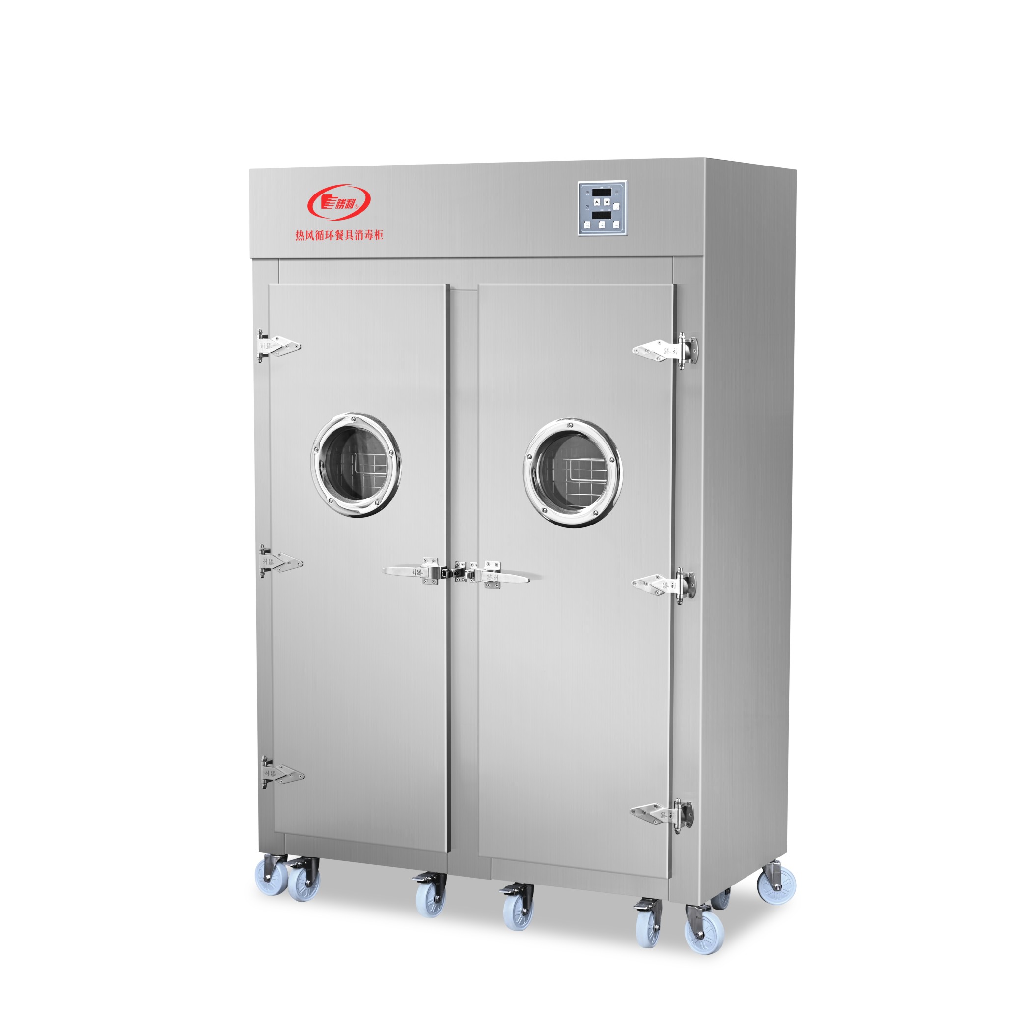不鏽鋼熱風循環餐具消毒櫃采用遠紅外線金屬電熱管加熱、熱風循環,加熱速度快、溫度均勻、省電。