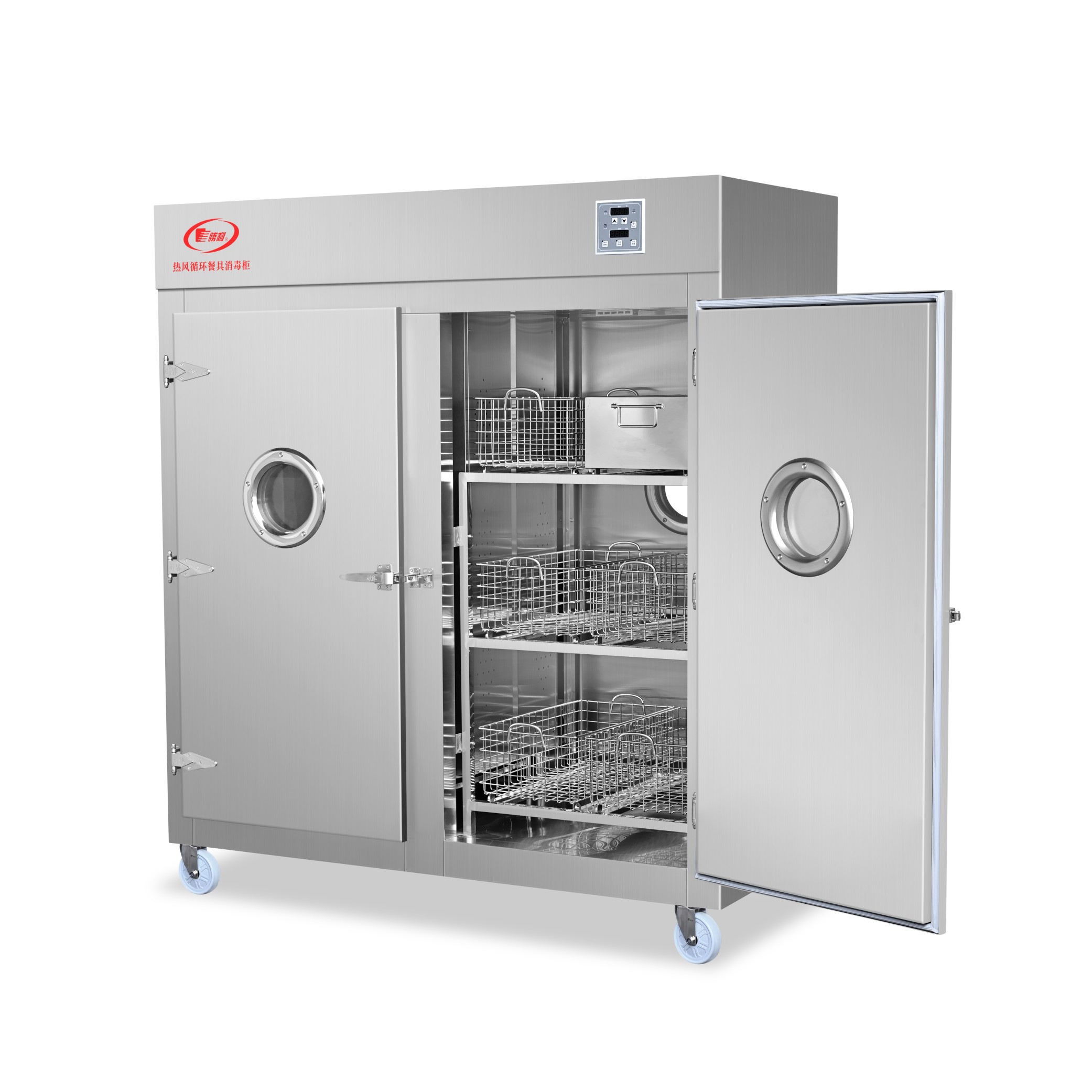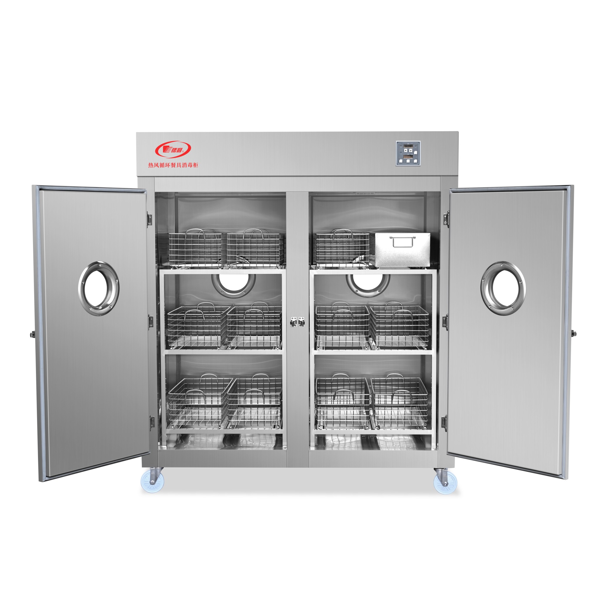■通道式遠紅外線熱風循環餐具消毒櫃采用雙通道對開四門設計,可應用於衛生隔離式設計,前進後出,幹淨整潔,節約用地,高效實用。